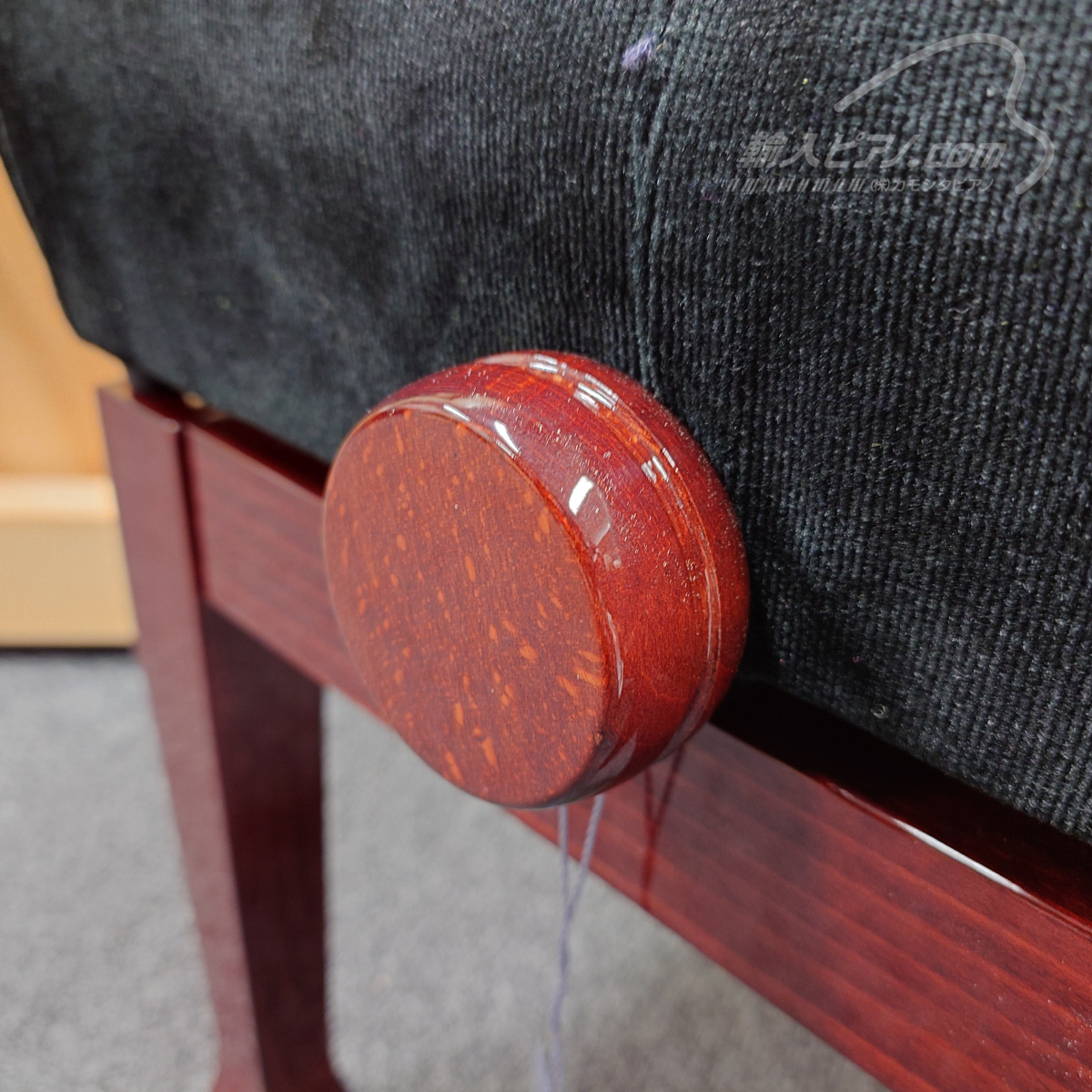 | 105W 【新品】 (本体価格¥60,000) → 特価 ¥58,300-(税込) (本体価格¥53,000-) レッドウォルナット 艶出し仕上げ 座面 アイス/ベルベッド 脚 笠脚 無段階ネジ式昇降、木製ハンドル 寸法 幅55×奥行32×高さ48~58cm 笠脚のワンポイントが素敵な一脚です。ピアノの脚の形状とコーディネートすることができます。 |