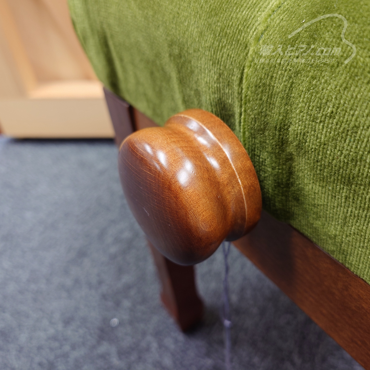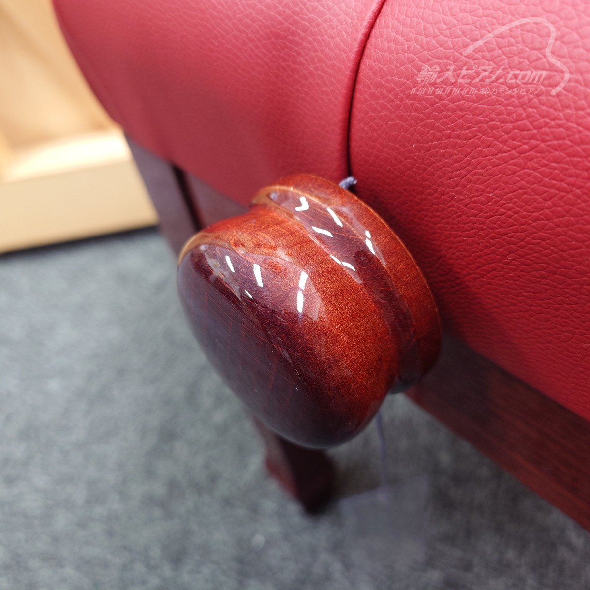 | 105W 【新品】 (本体価格¥60,000) → 特価 ¥58,300-(税込) (本体価格¥53,000-) レッドウォルナット 艶出し仕上げ 座面 アイス/ベルベッド 脚 笠脚 無段階ネジ式昇降、木製ハンドル 寸法 幅55×奥行32×高さ48~58cm 笠脚のワンポイントが素敵な一脚です。ピアノの脚の形状とコーディネートすることができます。 |